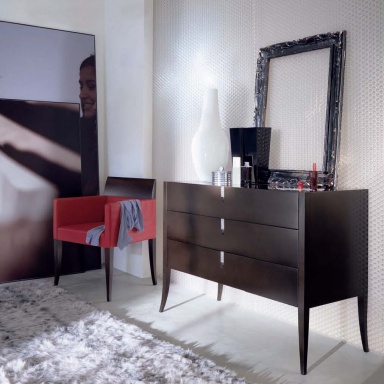 Dresser with drawers from solid wood Solitaire from the Italian manufacturer Selva. The model has three drawers that have inserts with niches. Handles have decorative inlays to choose from: amber, red obsidian, pearl or SWAROVSKI stones. The color scheme of the model in the catalog of the manufacturer. Chest Solitaire indispensable piece of furniture in any room.