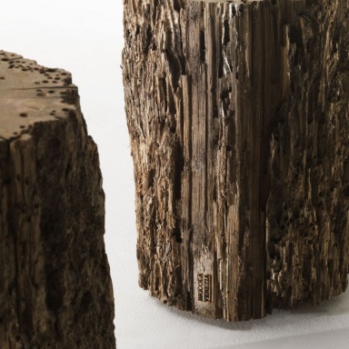 Bricola Venezia stool from the Italian manufacturer Riva 1920. The product is carved from a solid trunk of oak. Sections were smoothed, and the sides preserved in its original form.