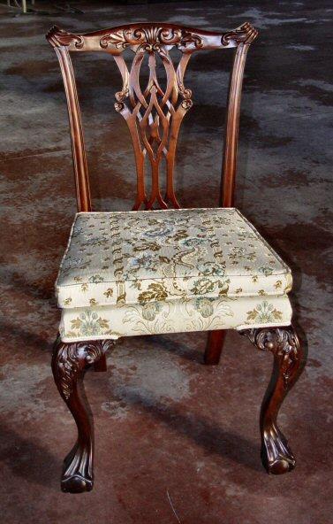 A chair from the Italian manufacturer Fratelli Sommacal. The frame of the chair is made of walnut. The filler is made of polyurethane foam. Upholstery textile fabric with ornament. A great choice for the living room or dining room in classic style. Finish and upholstery as in the photo.