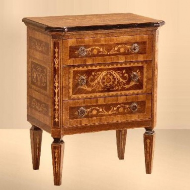Bedside table from the Italian manufacturer Fratelli Sommacal. The tables frame is made of wood. Finishing - veneer valuable breeds of a tree. The model is decorated with inlay. The bedside table will blend in the interior of a bedroom in classic style. Finish as in the photo.