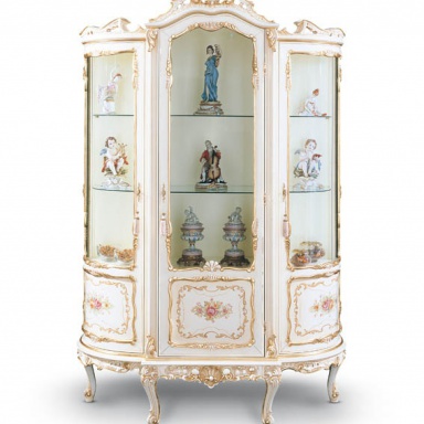 | Description: | Showcase made of solid wood with a lacquer finish, decorative elements in gilt. Finish as in the photo. |