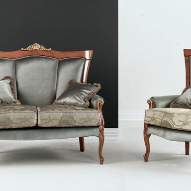 | Description: | Sofa set Vanity from Italian manufacturer Mobilsedia. Includes loveseat and chair. Frames made of wood. Seat and back in fabric. Colors as pictured. The filler is not deformable polyurethane foam. |