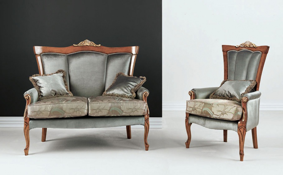 Sofa set Vanity from Italian manufacturer Mobilsedia. Includes loveseat and chair. Frames made of wood. Seat and back in fabric. Colors in the catalog of the company. The filler is not deformable polyurethane foam.