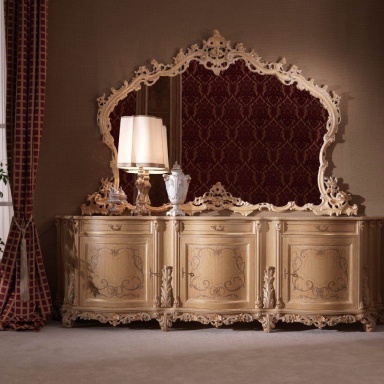 | Description: | Chest-TV stand for utensils 3-leaved carved from Italian manufacturer Fratelli Radice. Model made of solid wood with a lacquer finish, decorative elements in gilt. |