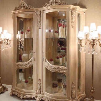 | Description: | Showcase carved, 2 doors made from solid wood with a lacquer finish, decorative elements in gilt. Finish as in the photo. |