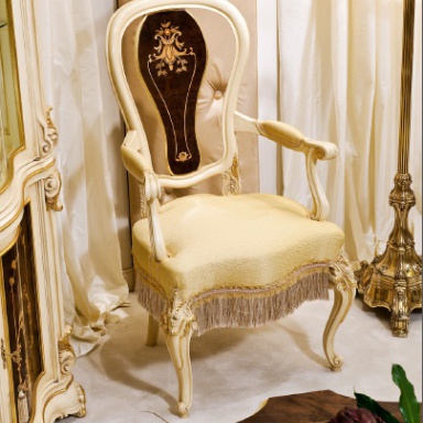 | Description: | Chair with armrests, upholstered seat, rear inlay on the back. Frame - solid wood. The lacquer finish ivory. Decorative elements in gilt. Finish as in the photo. |