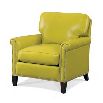 Chair with armrests from the American manufacturer Whittemore-Sherrill. Rectangular chair with high back, designed in classic style, to decorate the interior of any room, office or library. The frame and tapered legs made of wood, shaped back and seat with extra volume, roll the armrests. The presented model with leather upholstery and yellow trim along the contour of the nails of polished Nickel; options upholstery and trim can be selected in the catalog of the manufacturer.