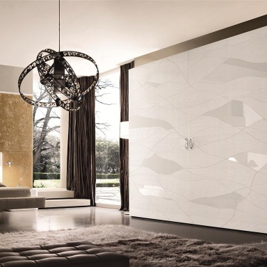 Wardrobe with two doors Nuvole from the Italian manufacturer Benedetti. The model is made in a modern style. The frame is made from tamburino. The base and top of the array of the Tulip tree. The rear wing plywood. Finish to be selected from a catalog company.