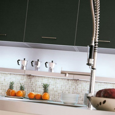 A model kitchen in a modern style. Stylish, dynamic design will easily become the center of your home. Variety of wardrobes of various sizes and a large assortment of accessories will help to create a set for the kitchen beautiful, easy to use and multifunctional.
