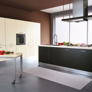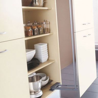 Versatility is achieved through a wide range of cabinets by size and content. Various colors available colors - orange, cream, mocha, walnut, red, natural oak, dark oak and grey oak. The facade in aluminum frame.
