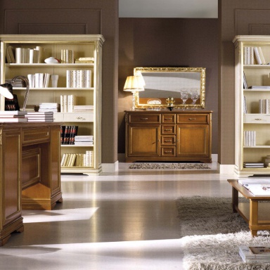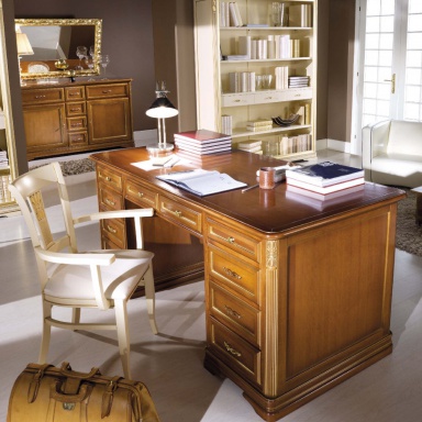 Desk from the Italian manufacturer Mirandola Export. Comfortable and spacious Desk is equipped with ten drawers. Model in the classic style. The frame is made of wood. The table is decorated with carved decorative pattern, gold trim and curly handles. A massive Desk Mirandola Export will create a pleasant working atmosphere in the interior.