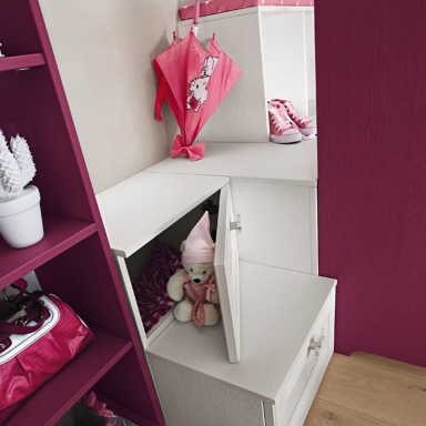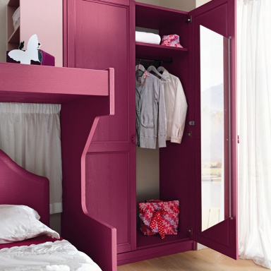 A set for the bedroom with single bed GENDARME with a high in class from the Italian manufacturer Callesella. Set with bed, bedside table, wardrobe, shelves, Desk, bench and shelves. Set is made of wood and MDF with a Matt finish. Single bed with headboard. Bedside table with drawer. Wardrobe two-piece with necessary fittings.