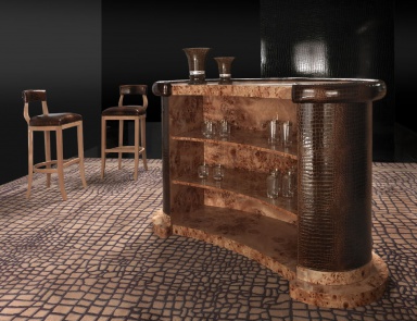Material type of the bar depends not only on its appearance and cost, but also its longevity. The most traditional and popular material is wood. In our catalogues you can find the bar from valuable breeds of trees or veneered valuable species. The classic design of this bar will never lose its appeal. Bar counter made of solid wood will give your home bar a serious and respectable.