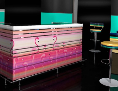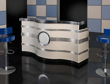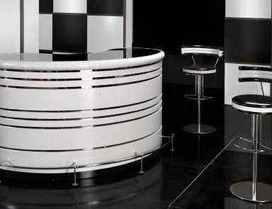 The bar is usually equipped with open or closed shelves, which are located under the table top and on which to place dishes and drinks.