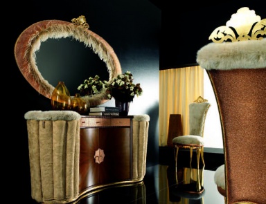 Sold under the brand AltaModa tables are created in different variations. This product is made in such stylistic fusions, such as: modern classic, glamorous art-Deco, fusion-modernity . In addition, the range of these products is represented mainly dining, coffee and dressing tables. For example, one of the models differs a rectangular top and massive legs, and treatment (varnishing).