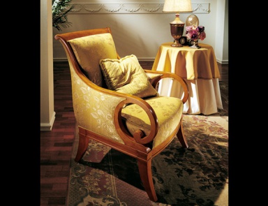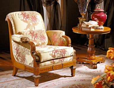 Italian furniture Busnelli Adamo has a gorgeous finish that accentuates all the advantages of the chairs. The tree is covered with glossy varnish, make natural color more pronounced. The manufacturer also uses gold leaf, which reflects the trends of the classical style.