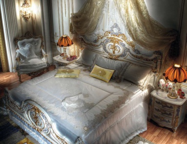 Created by Asnaghi Interiors beds are a vivid example of this. The frames are made of wood, which, given the effect of aging. Classic rectangular shape with elements from the Baroque, Rococo: high upholstered headboards with gold, with carved ornament. As the upholstery used high-quality textiles, created the company. Available wide selection of colors from a catalog. Any collection Asnaghi Interiors beds give the bedroom a special color, characteristic of the houses of the aristocracy of the middle Ages.