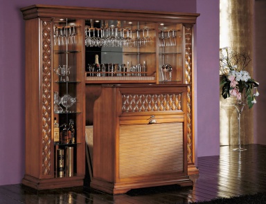 Created by Bakokko bar are considered luxuries. They are able to give the interior living room, study special nobility, to create the feeling of an expensive, prestigious environment. Made of solid wood, the model of bar counters Bakokko richly decorated with inlay of our finishes made by hand. The warm color of the wood perfectly combined with transparent brilliance of glass shelves. The idea of setting the bar as an item in the environment design gives spaces a sense of respectability, benevolence and coziness at the same time.