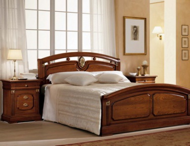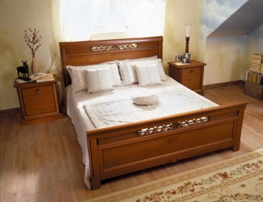 Fans of classic style have to taste a double bed with high headboard and footboard. Walnut veneer gives the product a special beauty. Headboard and footboard are decorated with openwork carving, giving the refinement of the product.
