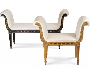 Products from the Italian company known the fact that all models from the collection of tables are hand-crafted. For these purposes most high-quality materials. Given that the main direction in which designed bench Roberto Giovanniniis a pastiche of 17-18 th century, namely classical style, appropriate is the use of natural wood and luxury textiles. Wood was the traditional material for the production of furniture of various types, therefore it is used in the manufacture of high-quality benches.