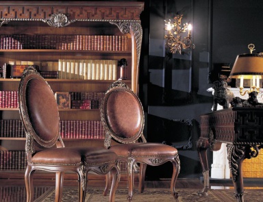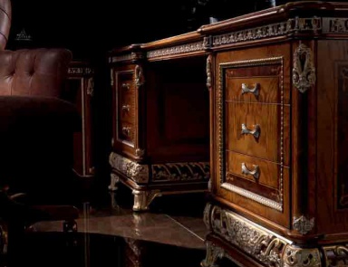Each sample of furniture for the office Jumbo Collection demonstrates the excellent quality of technological processing of wood surfaces and craftsmanship of designer delights. Features of the decor: rich carving, inlay, silver-plating, gilding (author's techniques), artificial aging, soft trim detail quilted fabric (skin). In the color scheme preference is given to wood, pastel pearl-gray shades.