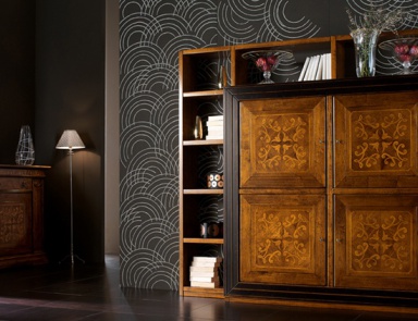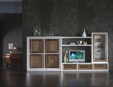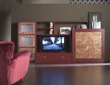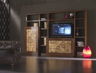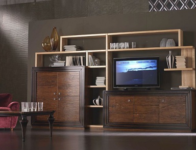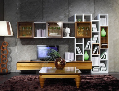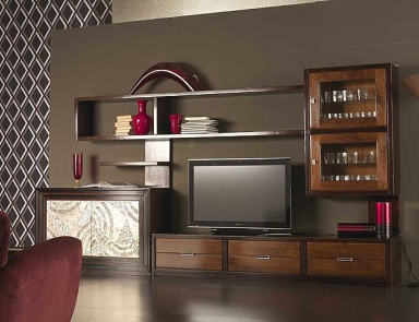 The main focus during the production is given to the selection of materials and build quality. Specially that most of the work is done manually. For the frames of the modular systems, wall Cantiero used the array of natural wood of valuable breeds. The material has a luxurious texture and colour, underlined with the help of varnish. Also use for finishing the wood veneer, which also makes modular systems, wall Cantiero incredibly beautiful. The manufacturer uses the insertion of glass, which perfectly complement and decorate the product.