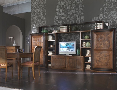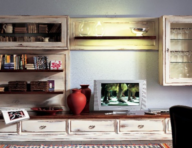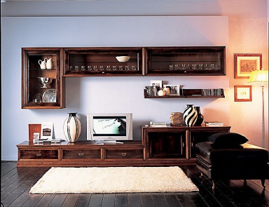 Italian furniture Cantiero very practical. The main purpose of these models is the placement of equipment, storage of books, albums. Modular wall system and fit perfectly into classical and modern interiors. A large number of shelves and drawers of different sizes will help you to organize the placement of all things. On open shelves conveniently positioned beautiful home furnishings.