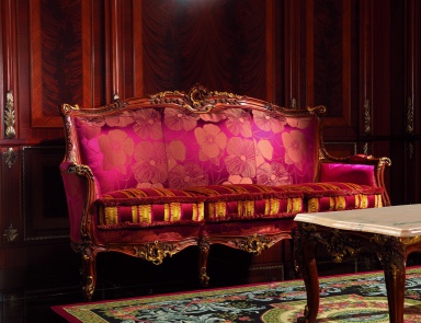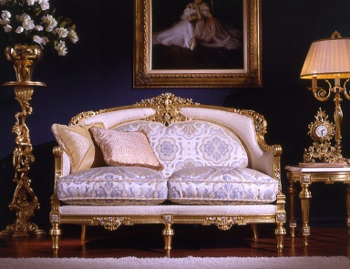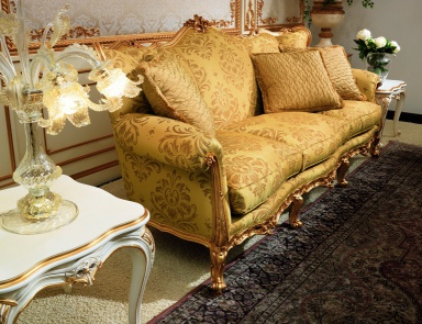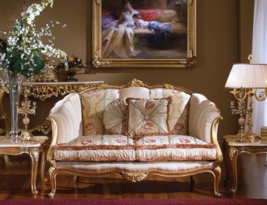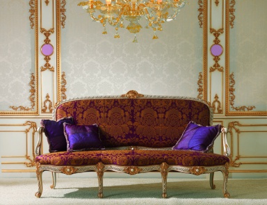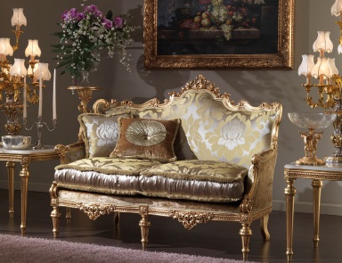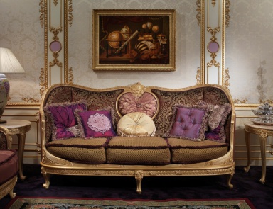 Presents Carlo Asnaghi sofas also combine the traits of the middle ages and modernity. Frames made of natural wood, high gloss finish that protects the product from damage. Textile upholstery gives the product a special flair.