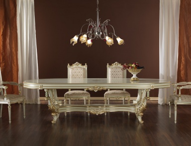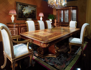 Like all the furniture of Carlo Asnaghi, these tables are the true epitome of luxury classics. Most of the models are presented in natural wood shades, however, you can order and options of white with gold trim. All tables are attached-like chairs with fabric upholstery is spectacular. They also carved, extravagant elements, which makes them solemn and impressively unique.