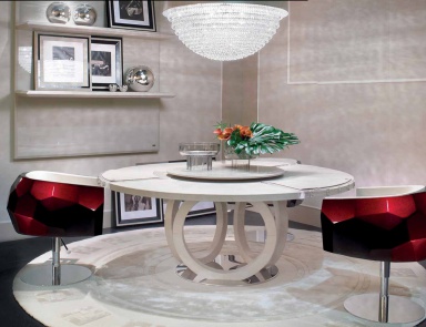 The classical form, which differs created Fendi furniture for dining rooms, highlighted with unique embossing, a combination of gold and silver, black and white. And lacquered surfaces of natural wood set off the overall harmony of the composition. The furniture of this house of fashion is rather strict and romantic, modern yet breathable French art Deco. While it is surprisingly comfortable, enjoyable to handle and ergonomic. And any room with these sofas, chairs and tables will emphasize housing modern man with excellent taste.