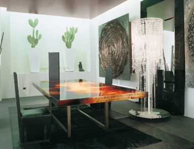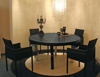 The confirmation of luxury this collection is specificity decor. Presents dining room furniture Rugiano traditionally upholstered in leatherette or natural leather of crocodile and snake. Interesting look of the model, covered with velvet, as this material gives them stylish and ostentatious pretentiousness, which are the attributes of the selected design solutions.