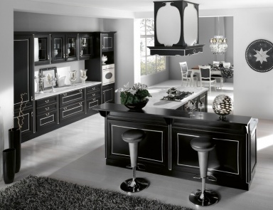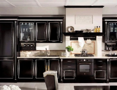 Unique elegance will add to the interior of the model Lubiex Cucine kitchens, made in white, black colors. Products combine the best quality materials such as natural wood, glass, metal, marble. Reliable, durable models combine outdoor, wall cupboards, island unit.