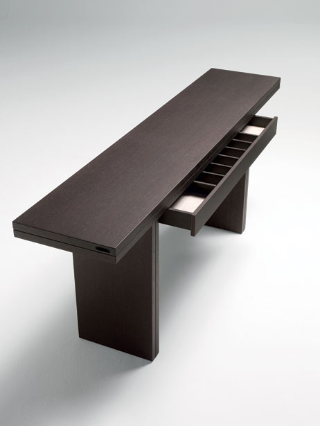 Table 268 Wood from Italian manufacturer Longhi. The frame is made from solid wood finish - wood veneer: Canaletto walnut or oak wood, or Matt varnish, not covering the wood texture. A perfect model for dining room in modern style. Colors: brown, natural color of the wood.