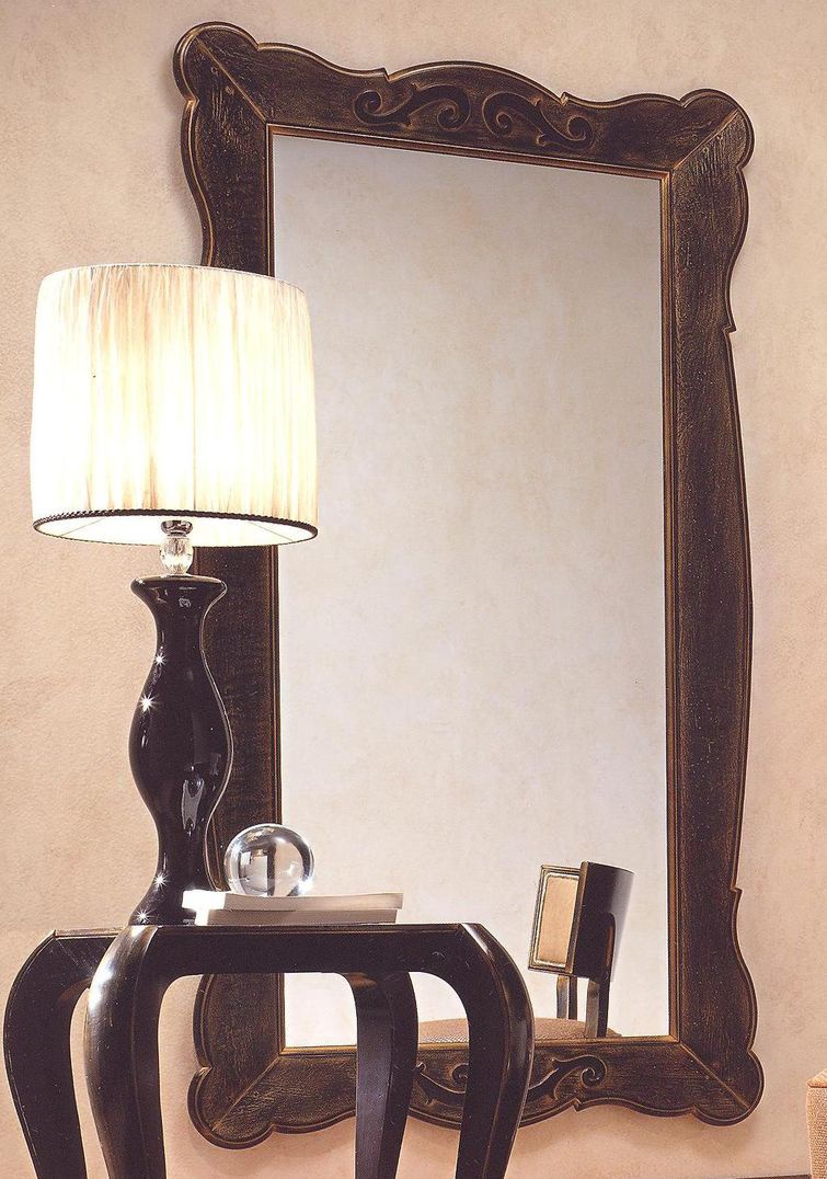 Wall mirror from the Italian manufacturer Pregno. Rectangular frame made of solid wood, finished with varnish. Colours in stock.