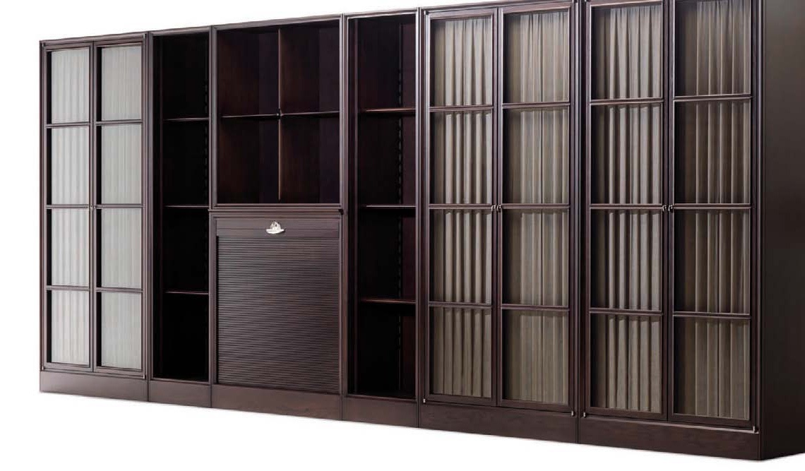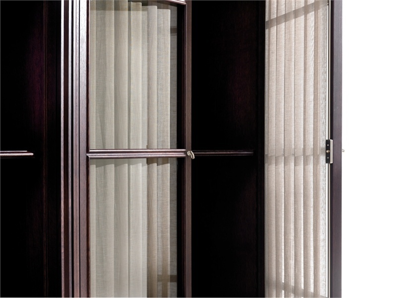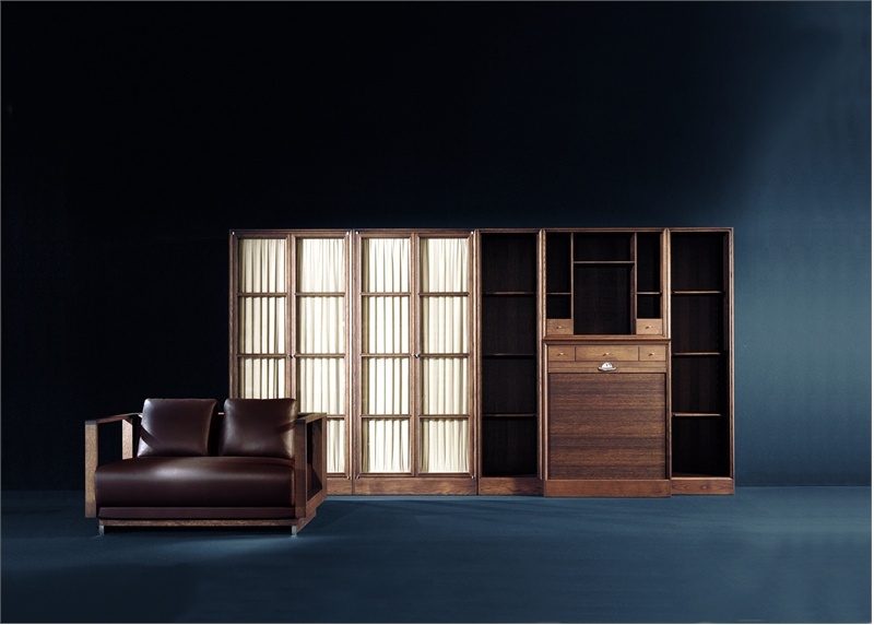 Model: Modular Wall Unit from Italian manufacturer Ceccotti. The model is a wardrobe and a bookcase. The d?cor textiles, the panel is made of glass, fittings made of brass. Present treatment under the old. The style is modern.