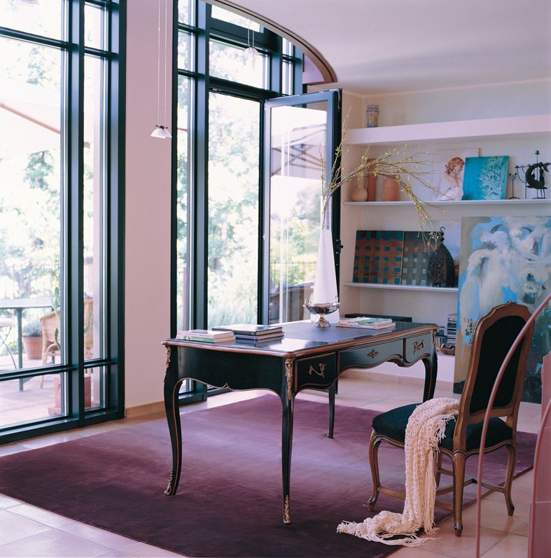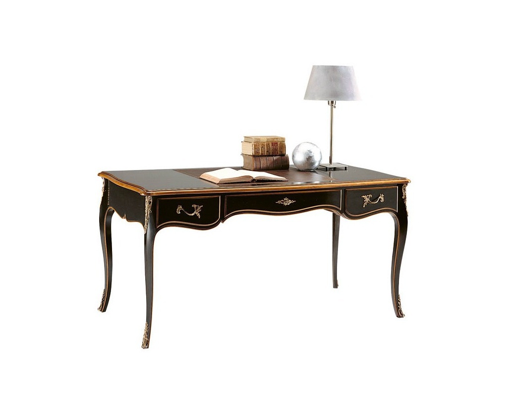 Desk - Selva. The classical model on elegant legs. The frame is made of cherry wood with decorative metal fittings. The product black. Stylish and original table will fit perfectly in any interior.