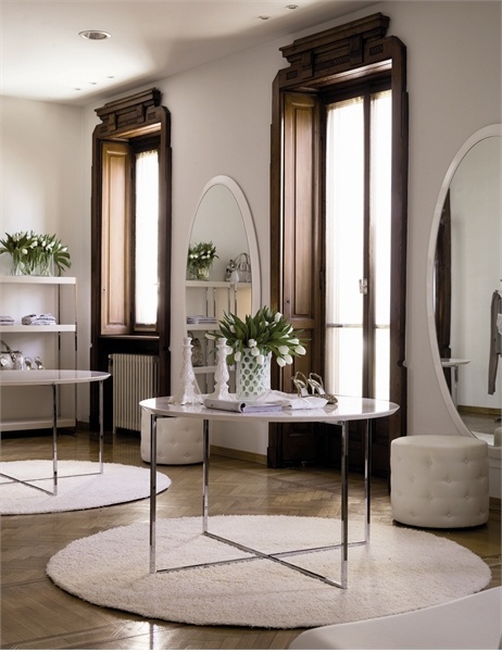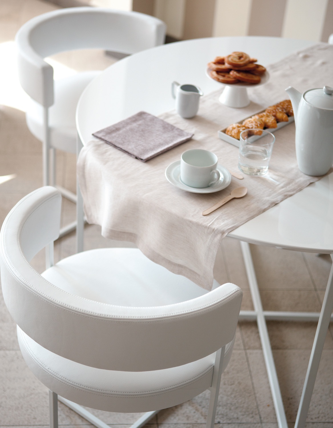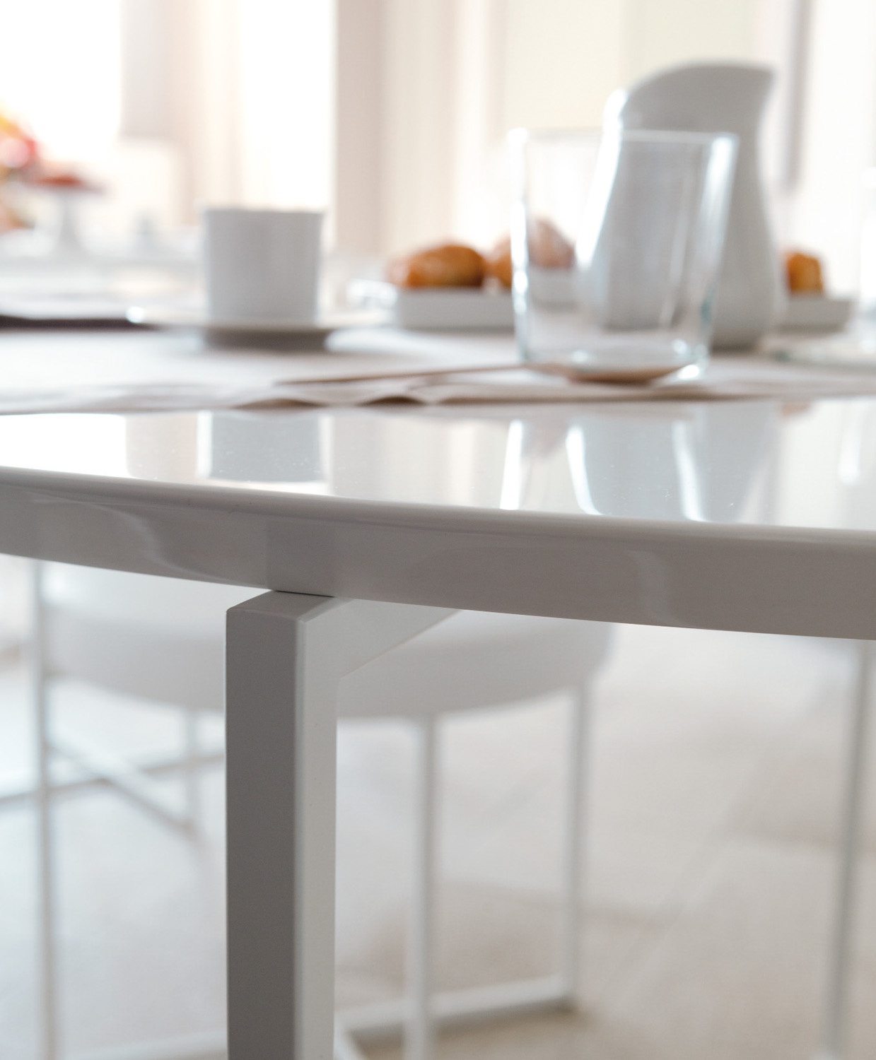 | Description: | Dining table round shape. The base is made from chromed metal. Table top covered with white gloss paint. (As pictured) |
