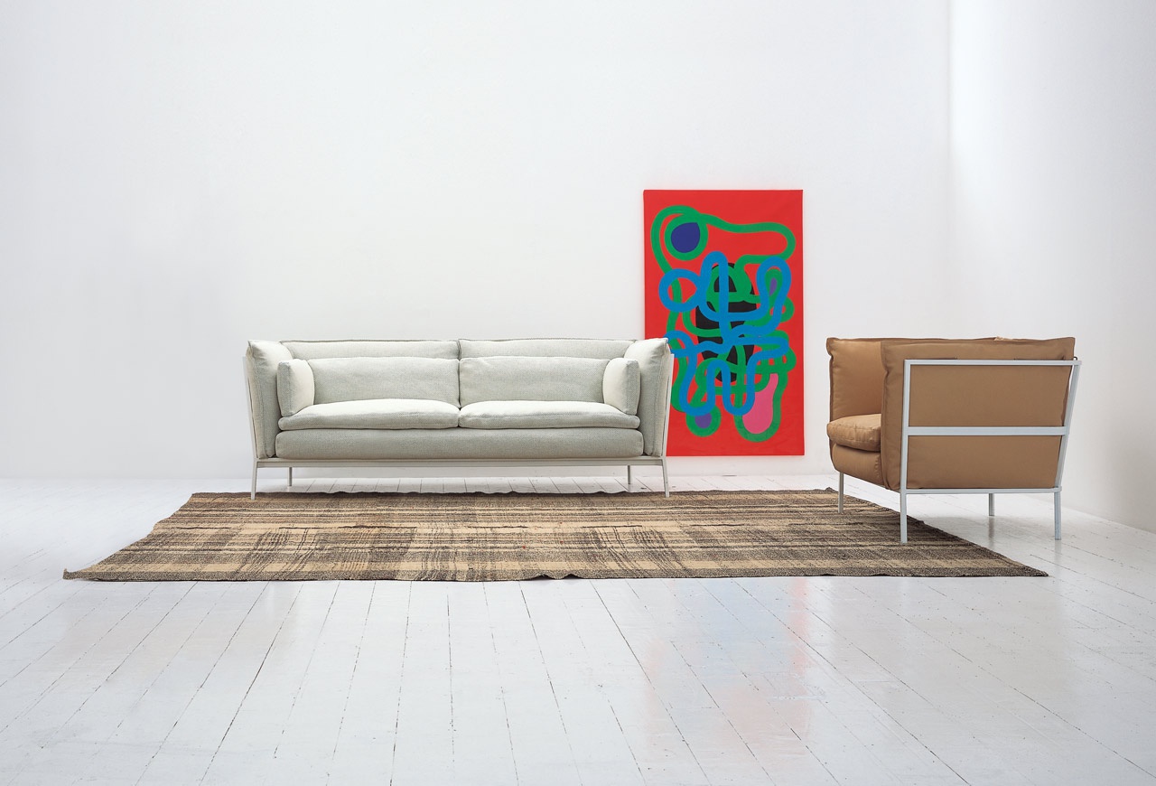 The Basket sofa from Italian manufacturer Cappellini. Frame of sofa is made of painted metal, and removable padding made of leather and textile. The color of this model of sofa you can choose according to the catalogue of the manufacturer.