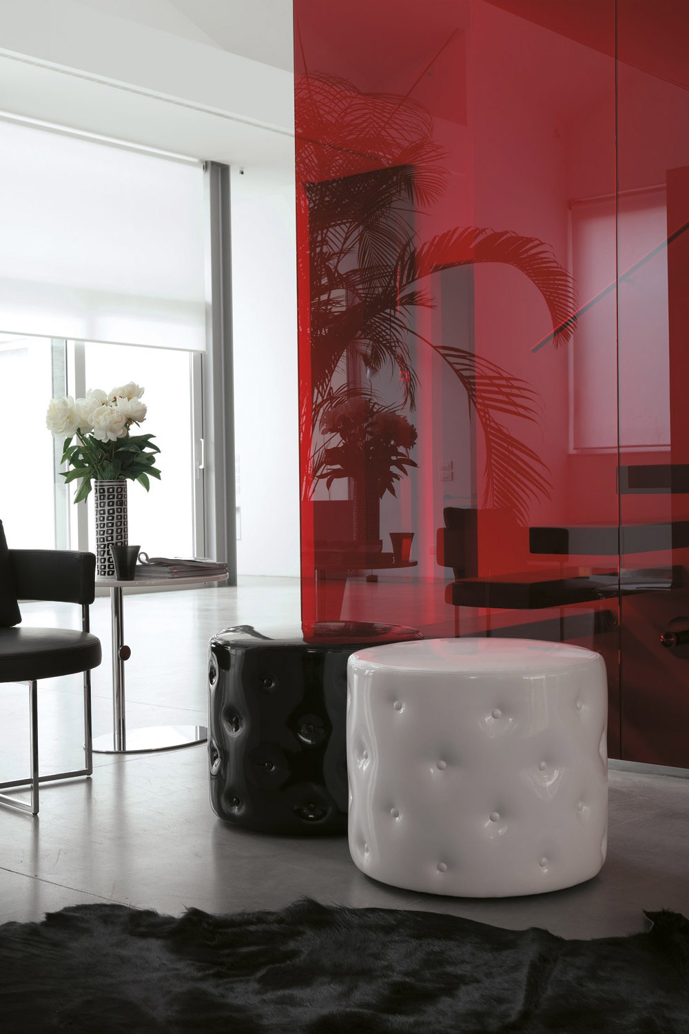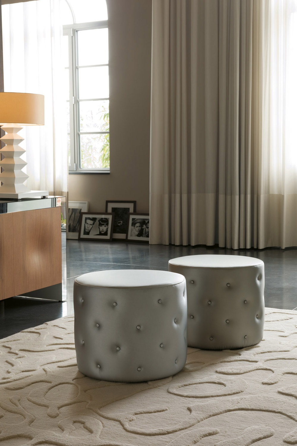 Poof Snap from the Italian manufacturer Porado. A soft poof of the original form, entirely covered in leather with decorative stitching. Color in stock. The pouf can be used as a table. The model is executed in classical style.