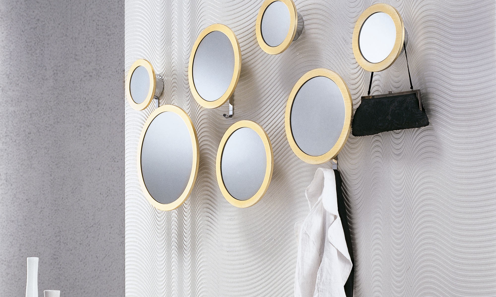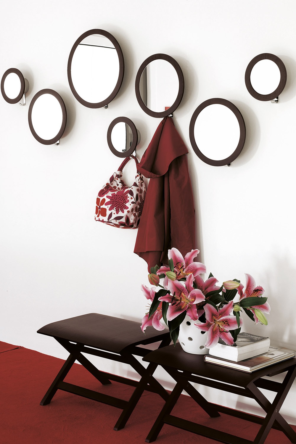 | Description: | Set of 5 wall mirrors of different diameters with a hook for clothes. Frame in white Matt lacquer finish. |