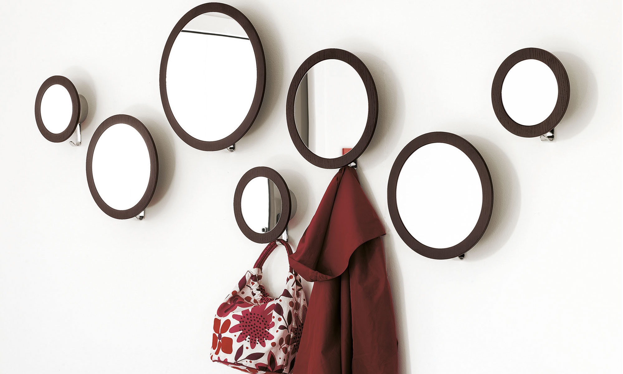 | Description: | Set of 5 wall mirrors of different diameters with a hook for clothes. The frame is made of solid ash wood in wenge finish. |