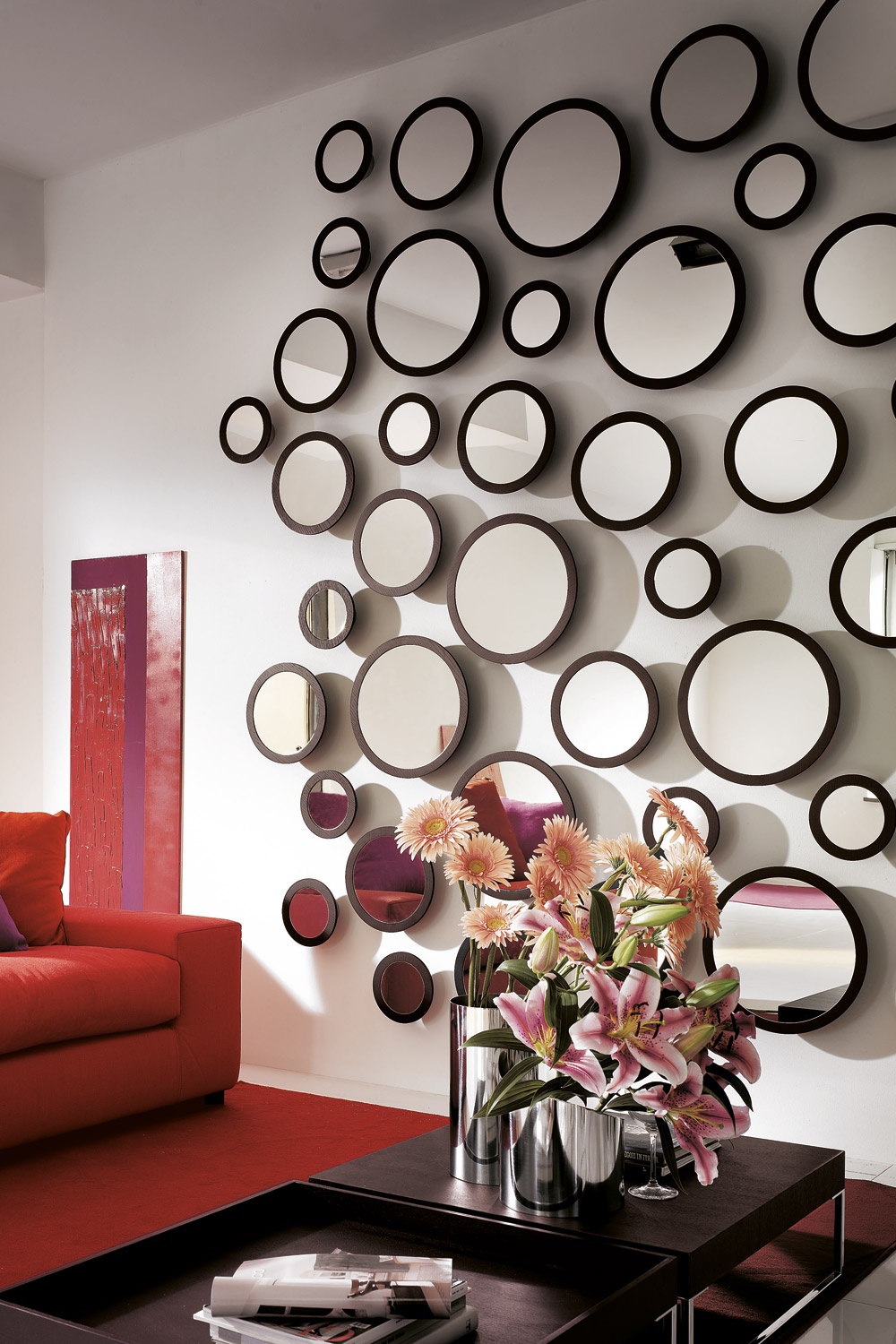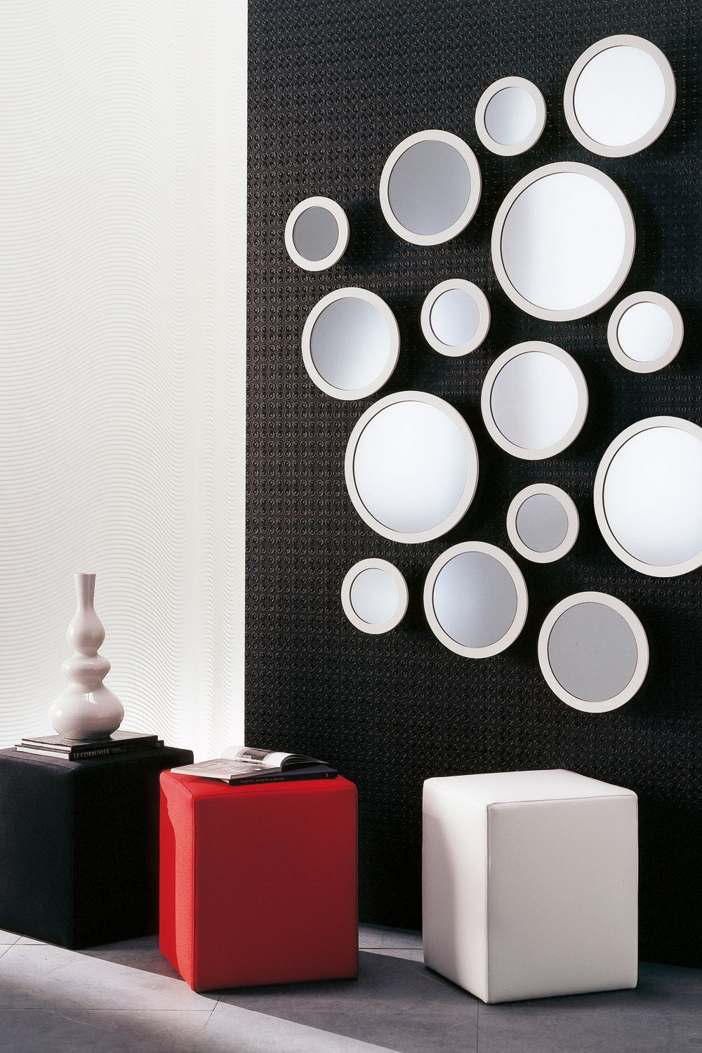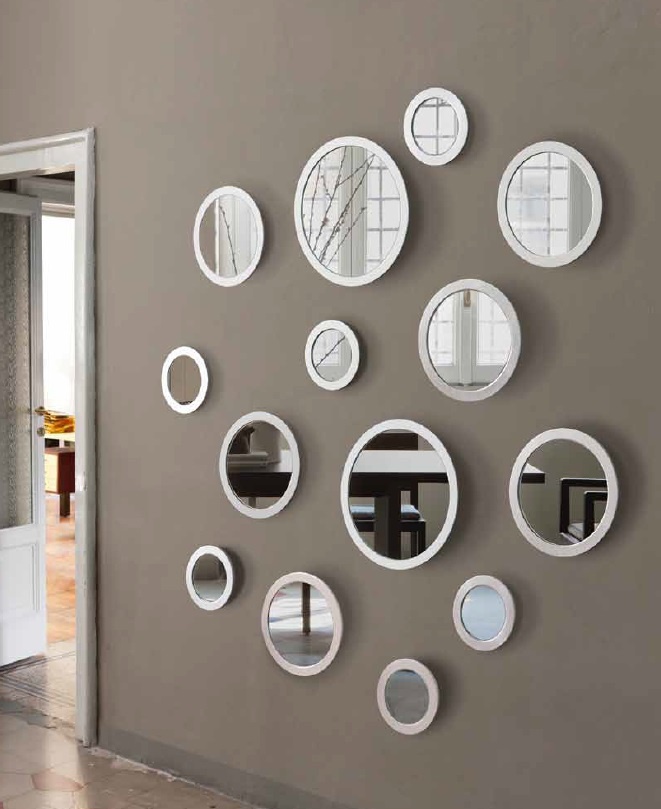 | Description: | Set of 7 wall mirrors of different diameters with a hook for clothes. Frame in white Matt lacquer finish. |