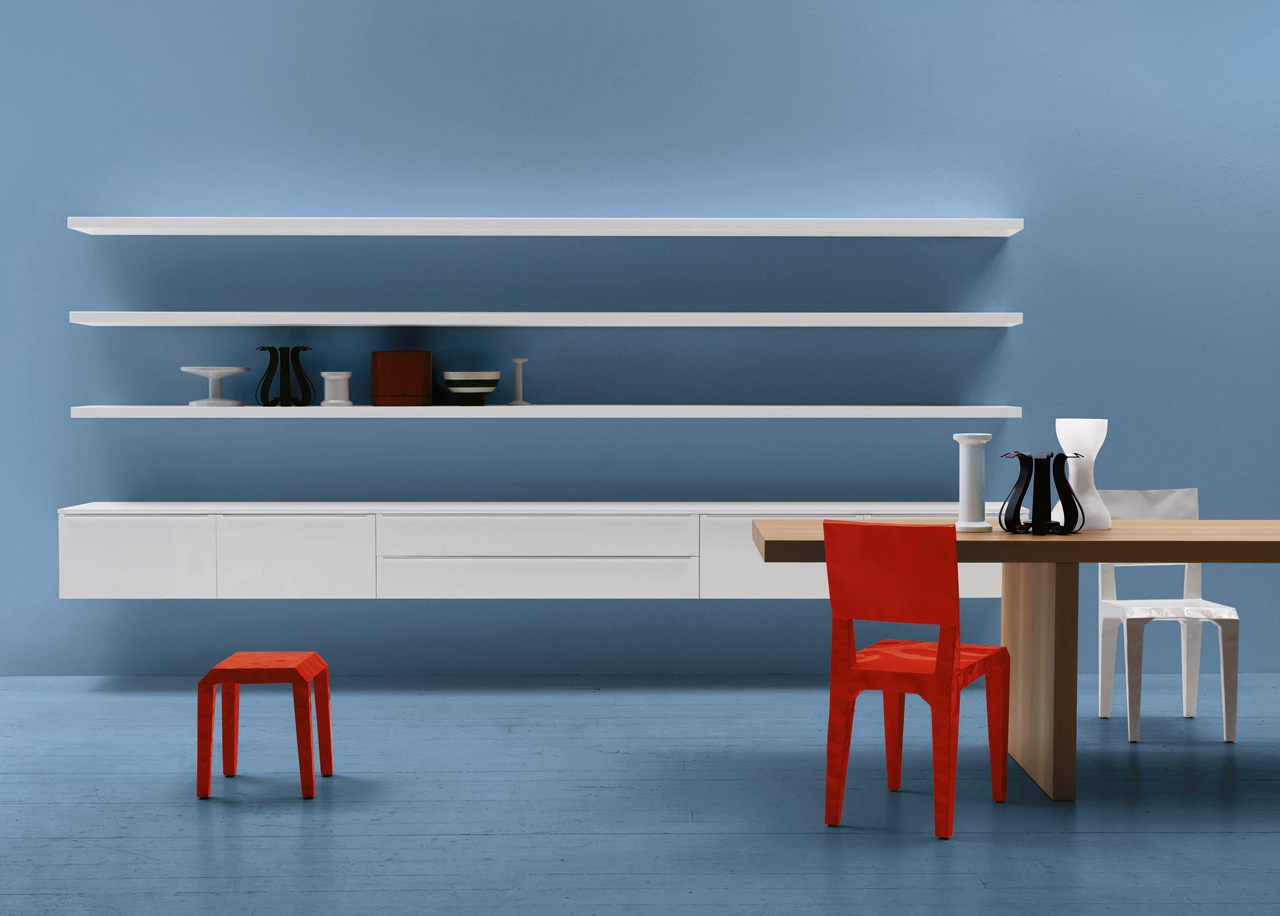 Modular system Cases from the Italian manufacturer Cappellini. The frame is made of wood and aluminum and glass made doors, shelves and fronts. The color of this model system can be selected in the catalog of the manufacturer.