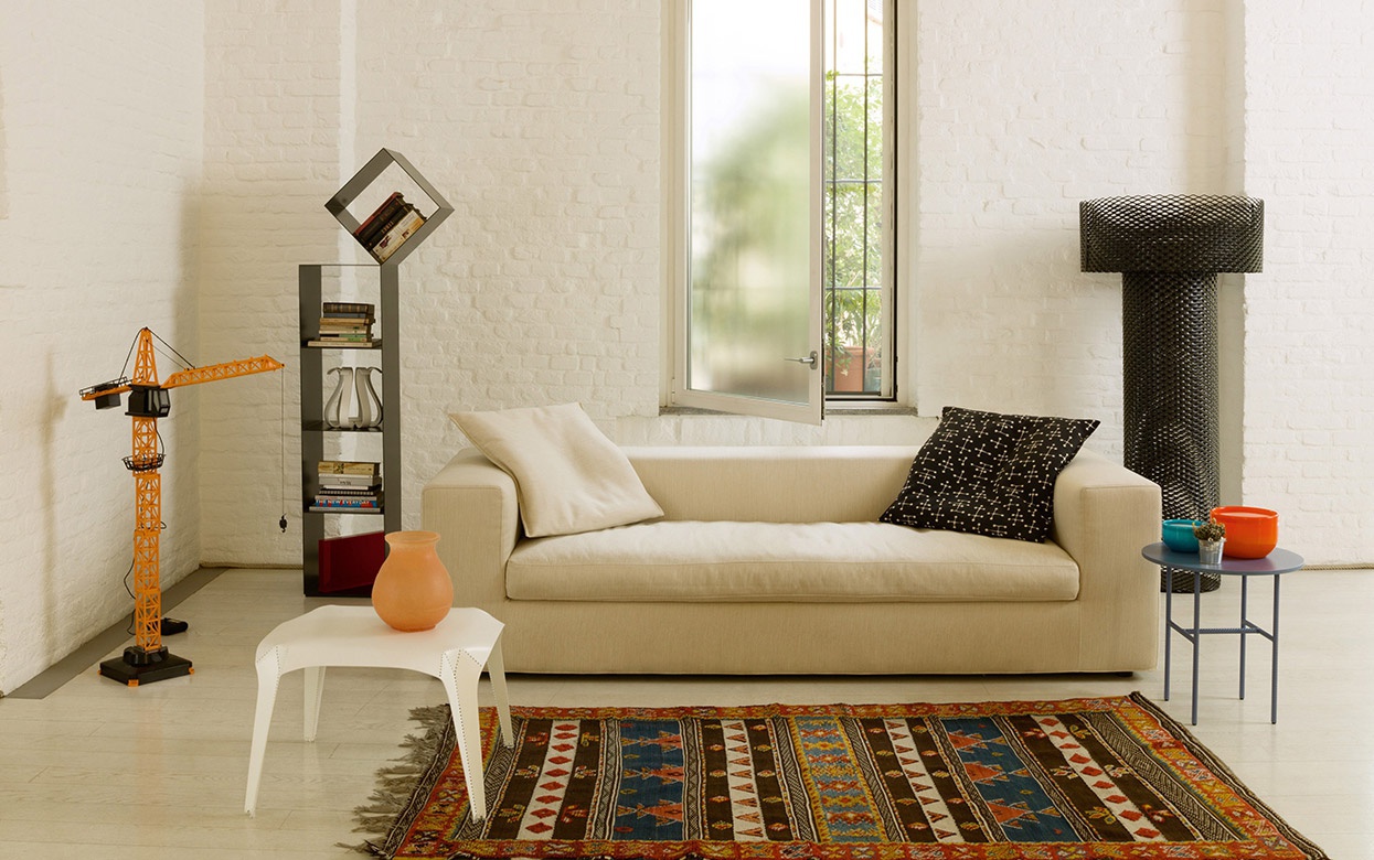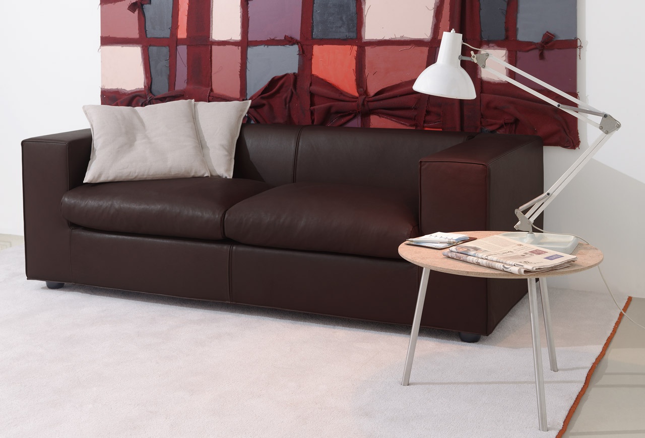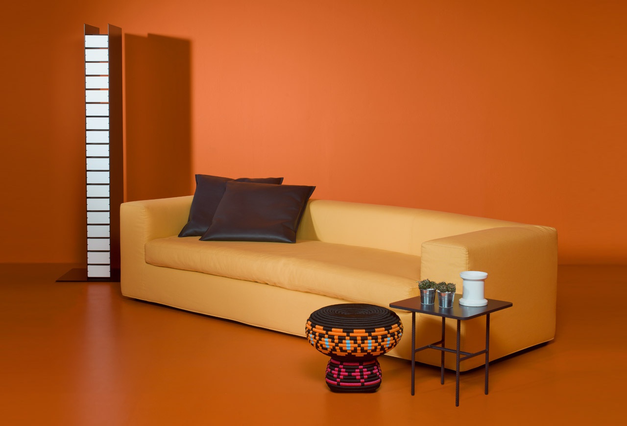 The Cuba sofa from Italian manufacturer Cappellini. Frame of sofa made of metal and wood and an upholstery made of textile and leather. The color of this model of sofa you can choose according to the catalogue of the manufacturer.