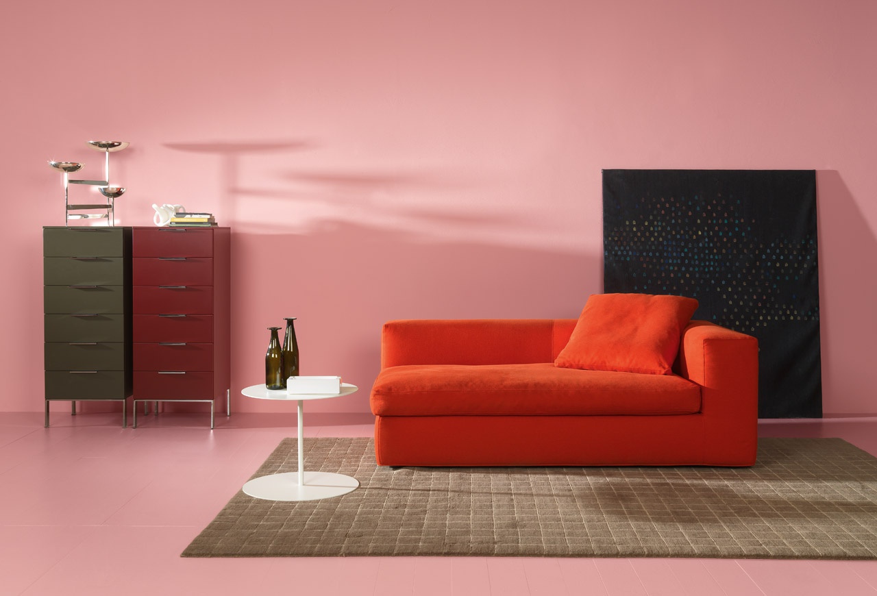 The Cuba sofa System from Italian manufacturer Cappellini. Frame of sofa made of metal and wood and an upholstery made of textile and leather. The color of this model of sofa you can choose according to the catalogue of the manufacturer.