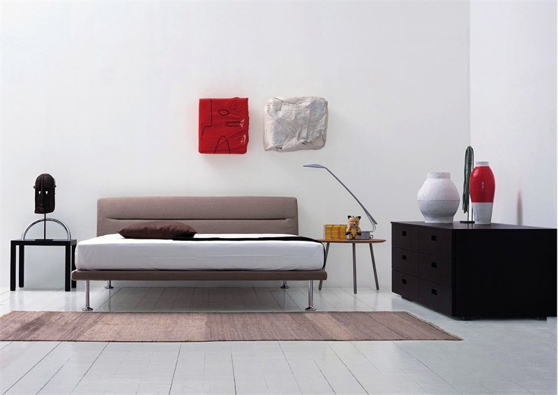 The Elise bed from Italian manufacturer Cappellini. Bed frame is made of steel, and the legs are made of aluminum. The base under the mattress is made from wood and plywood, and the upholstery is presented in a leather and textile version. The color of this model the bed you can choose in the catalog of the manufacturer.