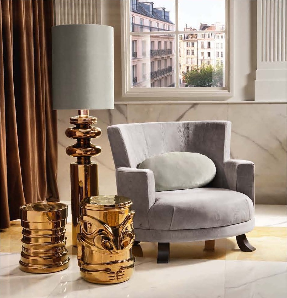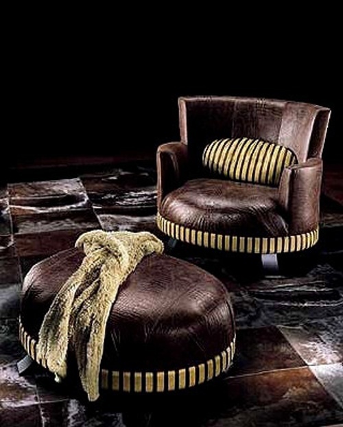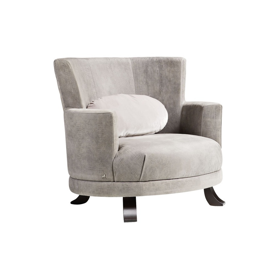 HAMBO chair from the Italian manufacturer Smania. The model is made in art Deco style. Chair with armrests and round. Frame made of solid wood. As upholstery leather. Colours in stock.