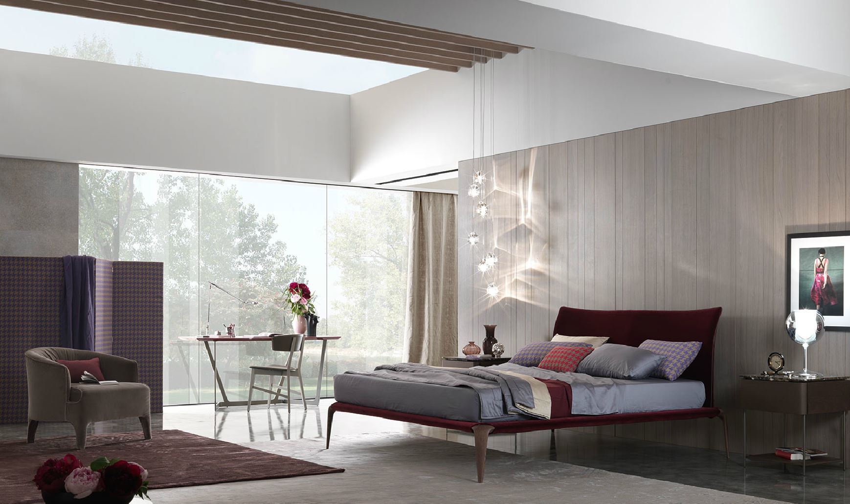 Margareth bed is from Italian manufacturer MisuraEmme. The frame is made of wood in oak finish. The head on the steel case. Bed in fabric. There is handmade. Product color red, you can choose the catalog of the manufacturer. A perfect choice for modern bedrooms.