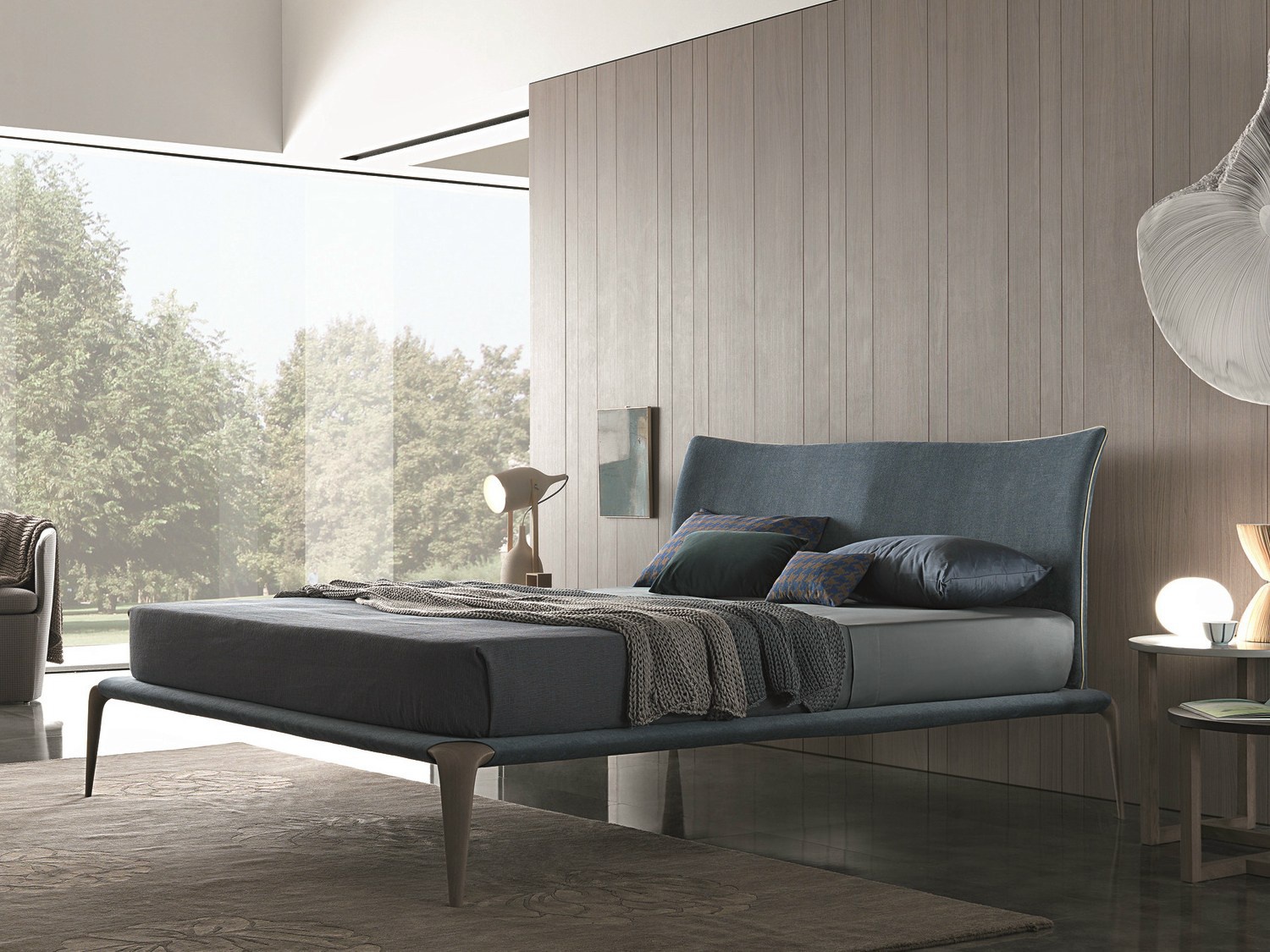 frame: natural wood frame headboard: chrome-plated steel veneer: oak upholstery: textiles seams: handmade coating: lacquered |