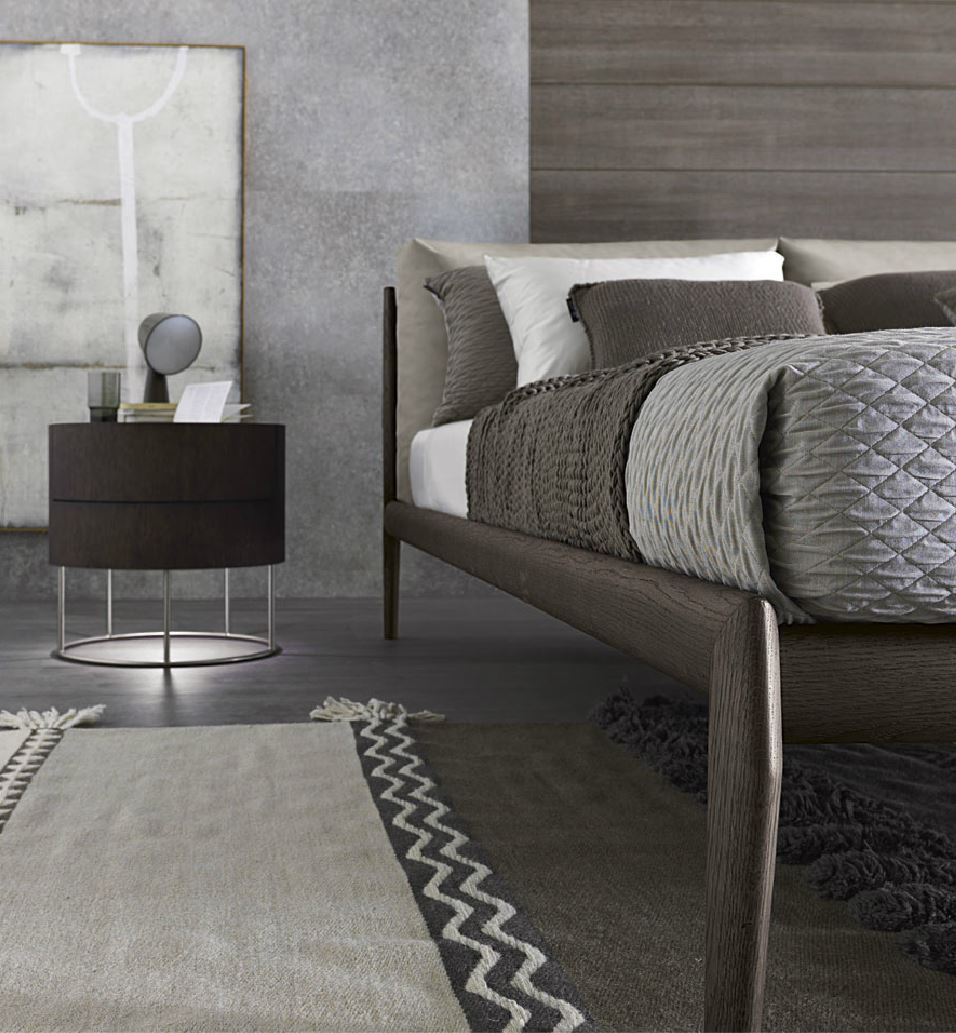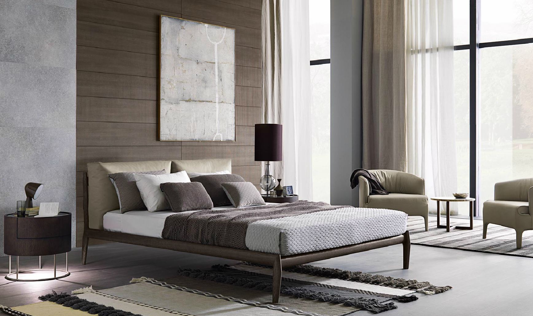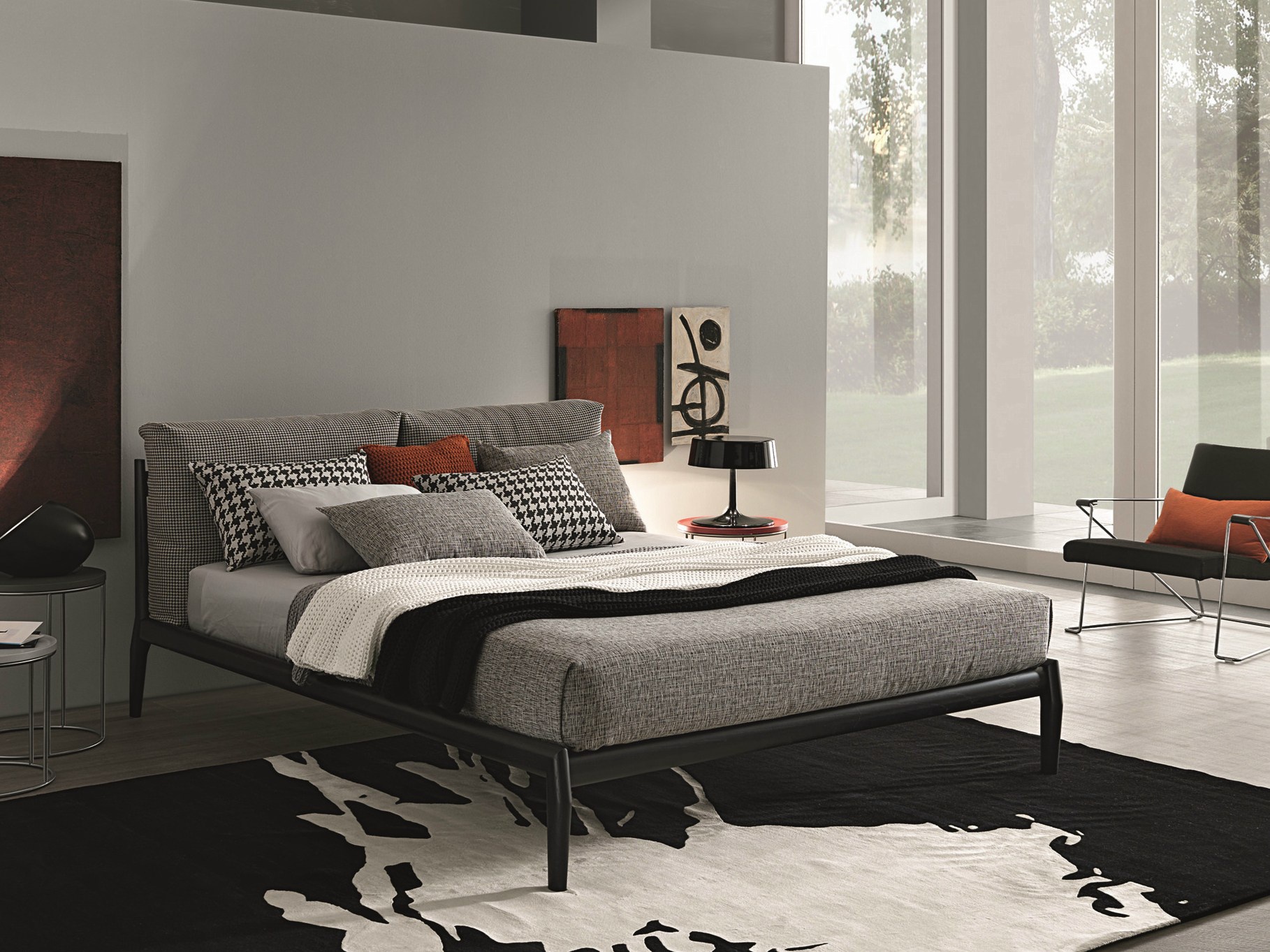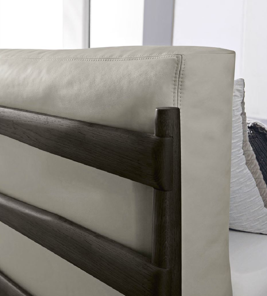 Morell bed from Italian manufacturer MisuraEmme. The frame is made from solid oak. Treated from a range of companies. Bed with detachable headboard in the form of pillows. Upholstery - leather/textile. Colors - gray, you can choose from a catalog. A perfect choice for modern bedrooms.